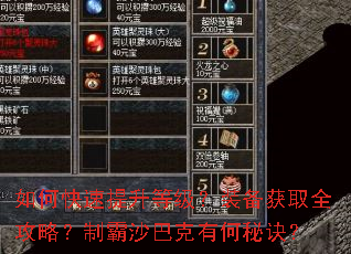 装备获取全攻略?制霸沙巴克有何秘诀?" alt="如何快速提升等级?装备获取全攻略?制霸沙巴克有何秘诀?" />